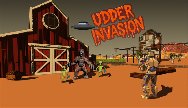 In Udder Invasion you have been tasked with a mission by a scientific military experiment: Annihilate the enemy, craft new weapons and uncover the mystery of the anomaly. Wielding lethal weapons, various upgrades and your deadly companion BUDDY. Survive the invasion and reclaim your freedom.