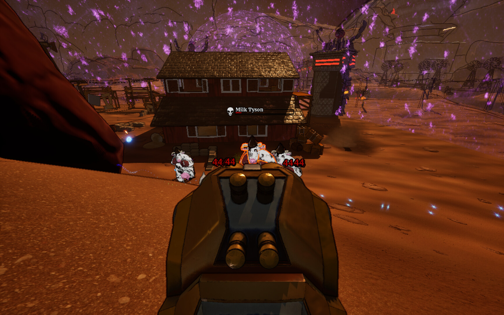 Gear up, cause things are about to get UDDERLY RIDICULOUS! Purchase and upgrade powerful weapons from V3NDOR-BOT so you are prepared to survive waves of silly aliens, EXPLODING chickens and boxing cows?? But it's okay because you've got BUDDY by your side to help you annihilate them all!