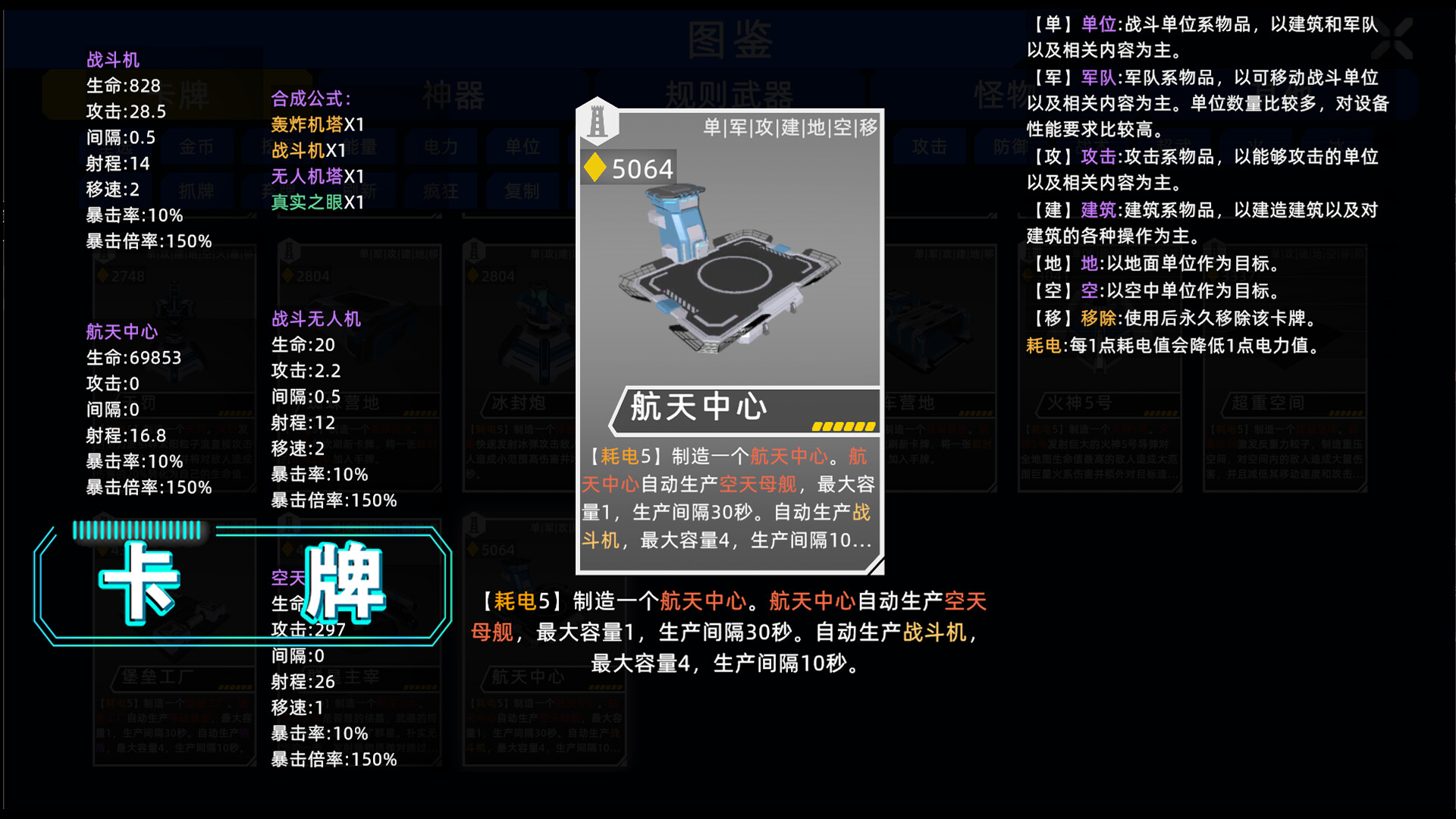 本游戏玩法结合了肉鸽,卡牌构筑,即时战略,塔防等元素。作为指挥官的你在一个随机生成的星球上,通过构筑卡组和神器,建造建筑和军队,升级科技,改变地形以及使用强大的武器来抵御茫茫多的强大敌人。虽然第一次玩需要一定的时间熟悉,但是上手之后还是有些上头的,希望大家喜欢。