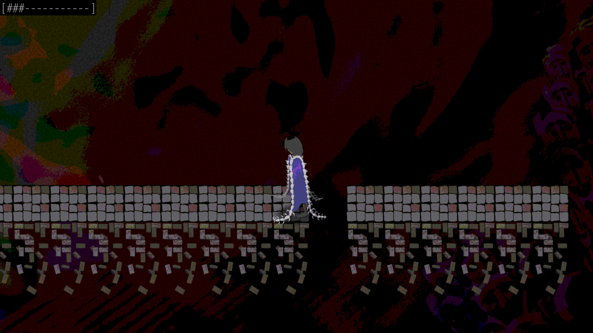 It contained the mostly-stable first level of a game that didn't exist yet. It was a sort of top-down platformer, but wasn't only about jumping in 360º and trying not to land on the void, you also had to fight fractal monsters in bullet hell combat.