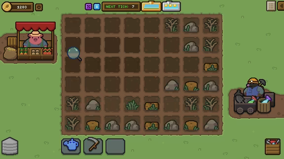 Some crops can mutate when planted next to specific neighbors. Experiment with different layouts to discover new species, each with its own stats, growth times, and visuals. Every mutation you find is added to your Mutation Notes.