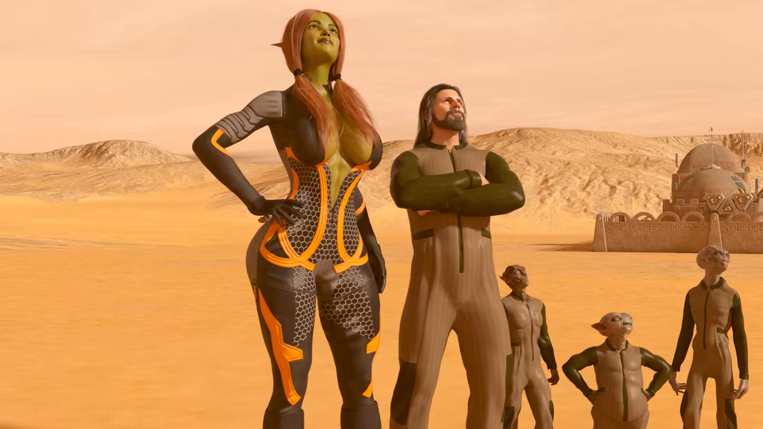"Hunter: Space Pirates" is a Visual Novel (VN) for adults with explicit sex scenes. Not intended for audiences under 18 years old.