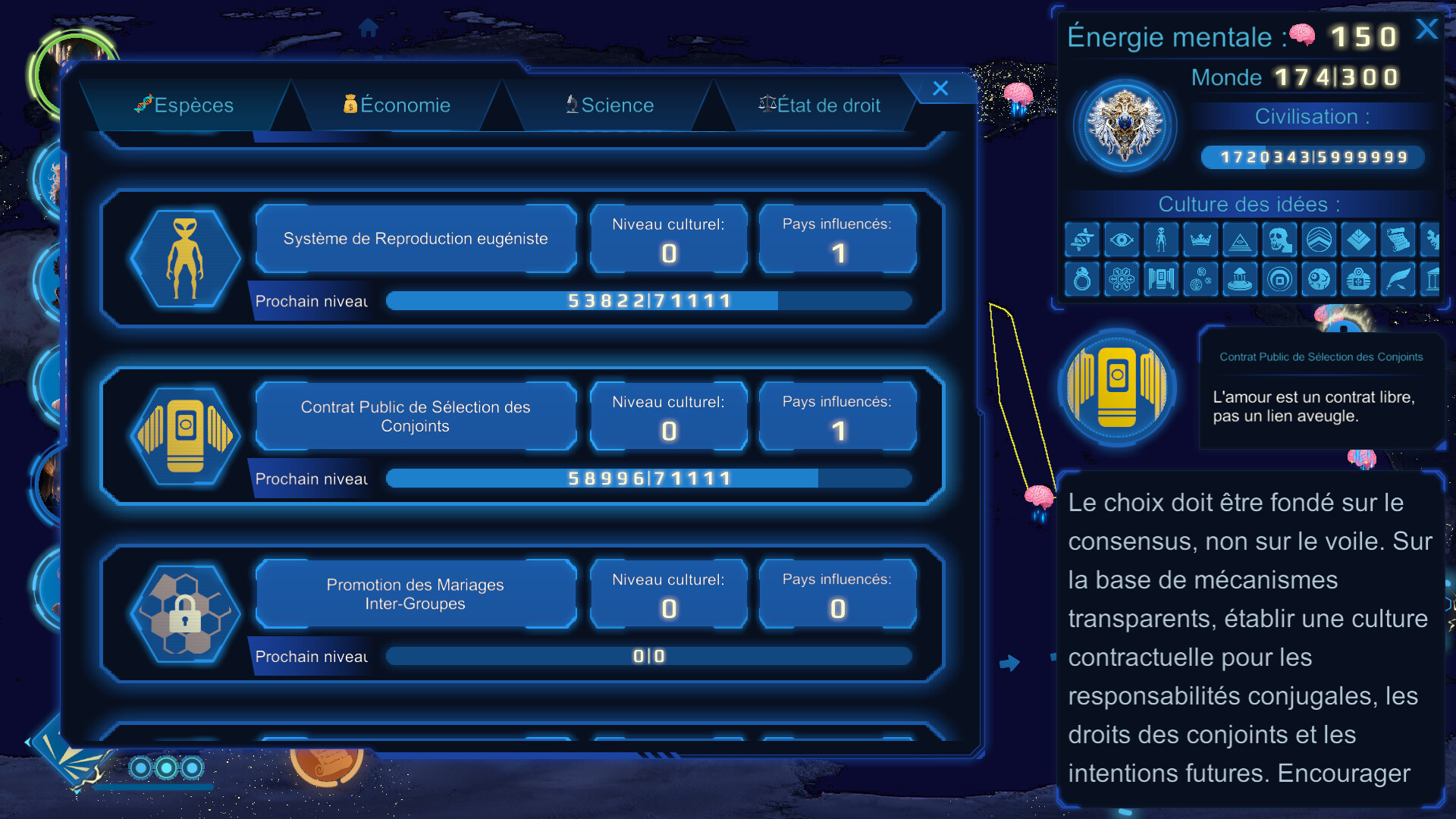 Ce jeu indépendant mêle réflexion philosophique, simulation institutionnelle et interactions épurées afin de construire un monde expérimental centré sur l’évolution des civilisations et les conséquences des choix.