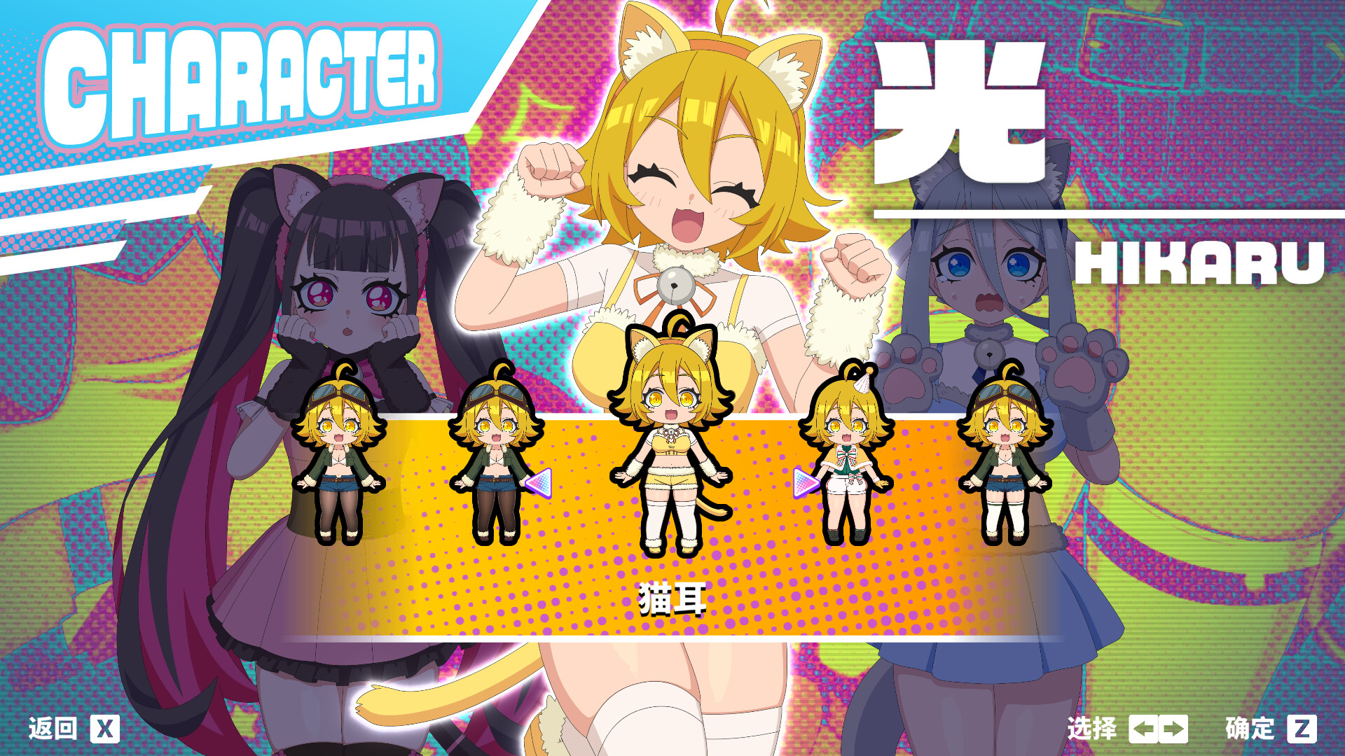 为3名角色各追加 1种猫耳服装。