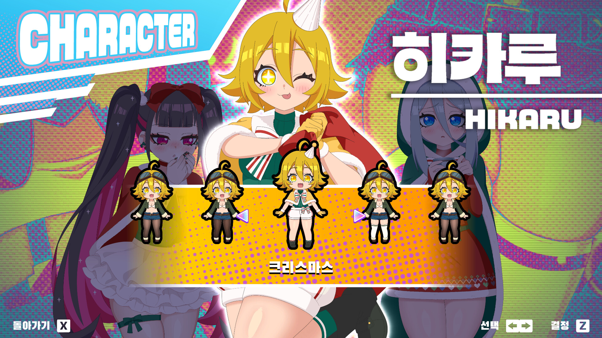 세 명의 캐릭터 각각에게 하나씩 크리스마스 의상이 추가됩니다.
