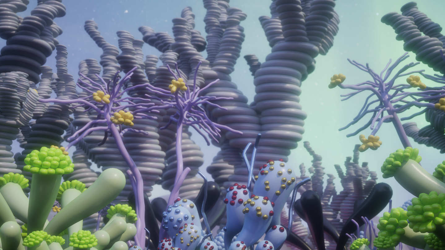 Place your building blocks and, if you want, let them move. You can start with a completely empty canvas or explore a starter world that hints at what’s possible. Set the mood with familiar or alien-like atmospheric phenomena and perception modes.