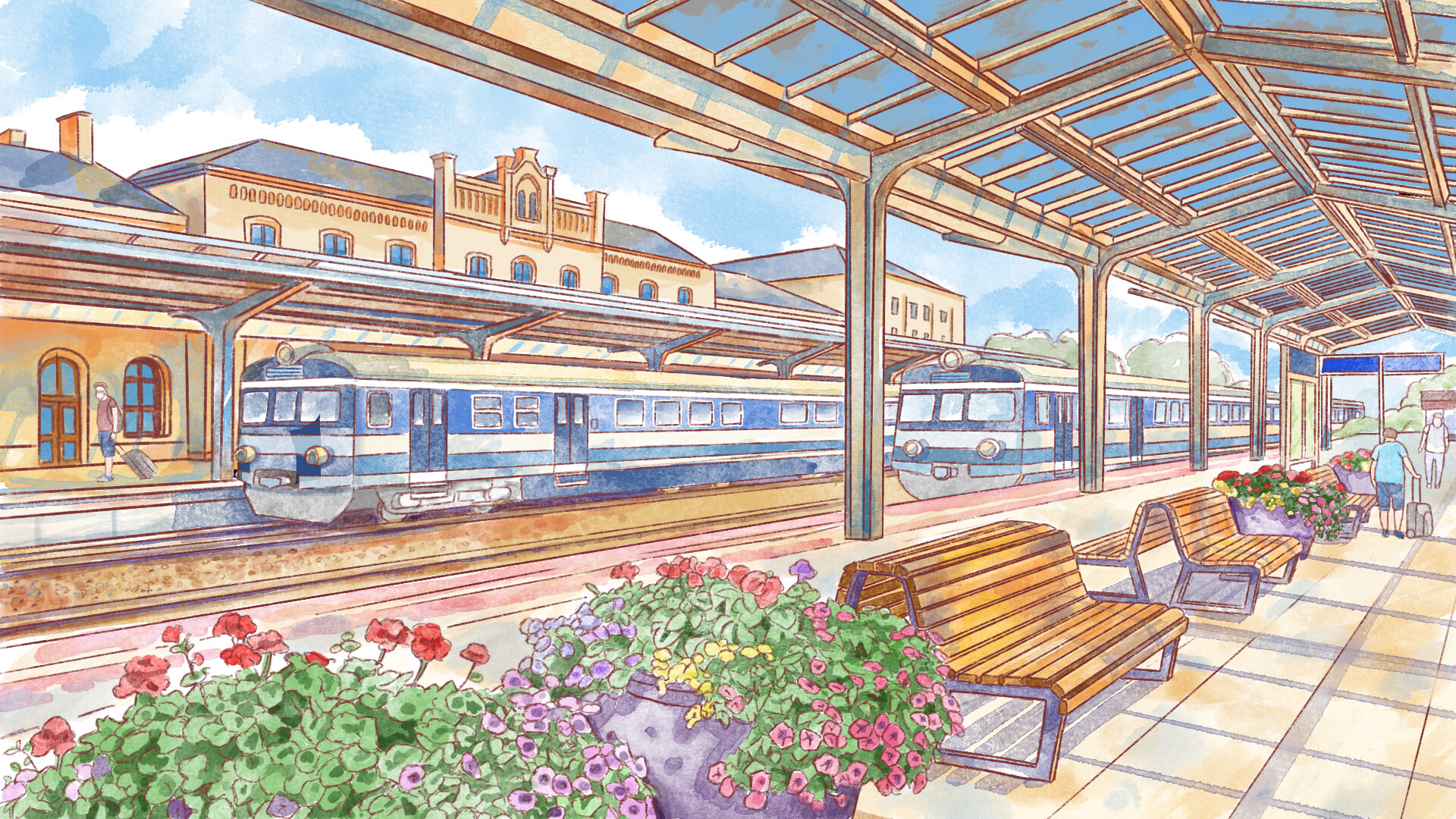 beautiful hand-drawn illustrations - pencil-sketch lines washed with gentle watercolor.