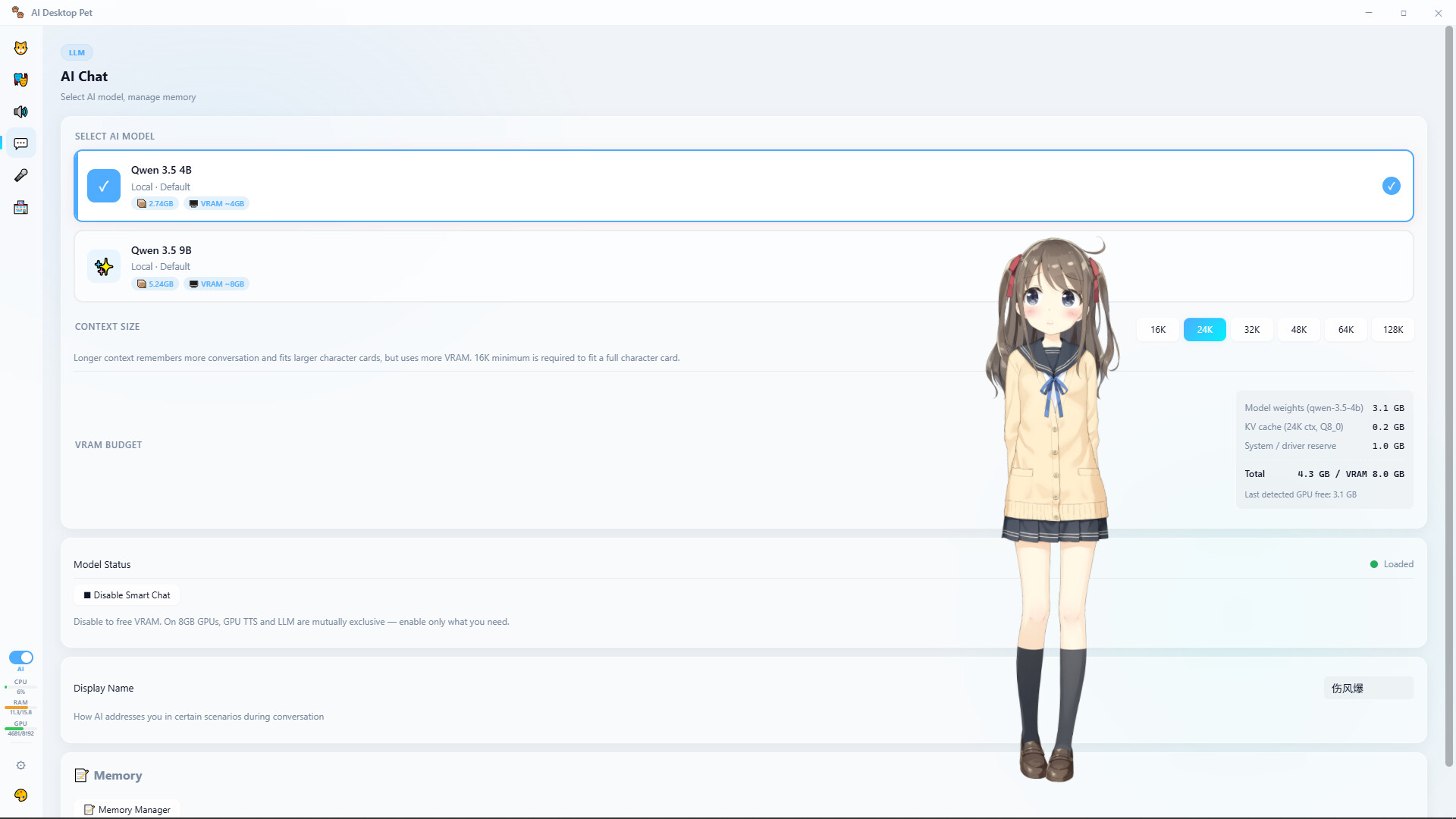 This application uses local AI technologies to enable interactive conversations with your desktop pet:
