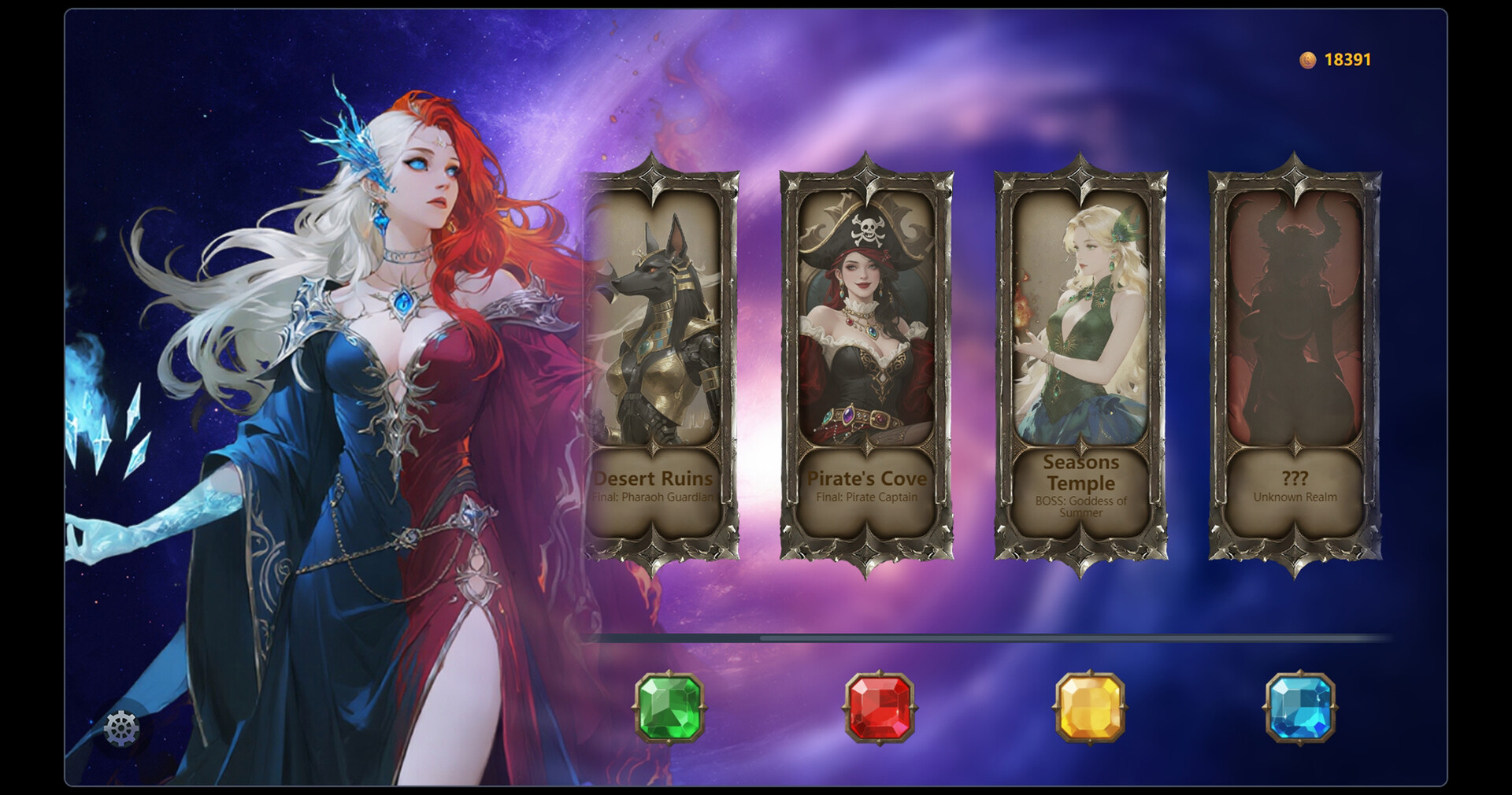 • Four Unique Worlds: Traverse the treacherous Misty Forest, uncover the curses of the Desert Ruins, conquer the stormy Pirate Bay, and finally challenge the Goddess's trial in the Temple of Seasons.