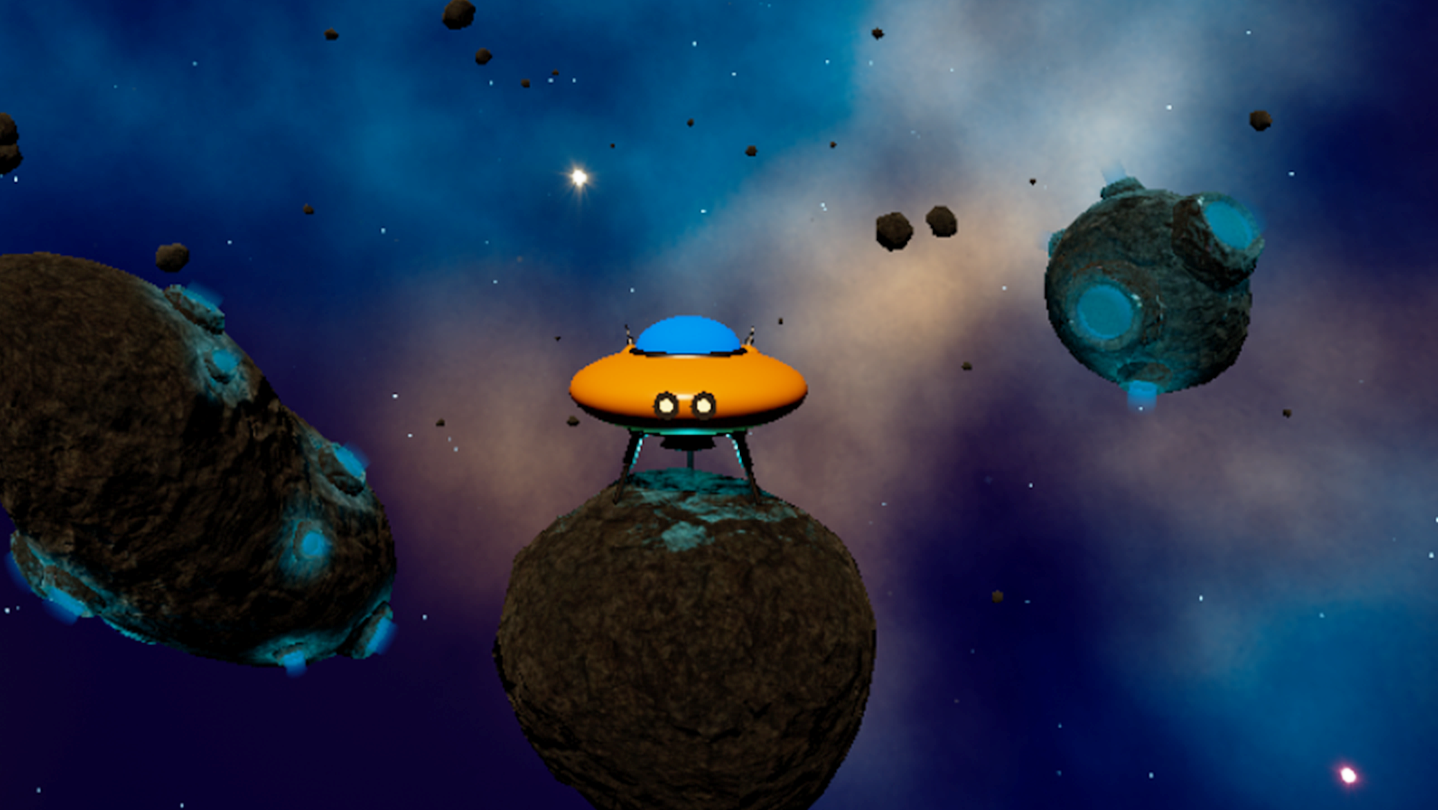 • Hop around fully 3D asteroids.