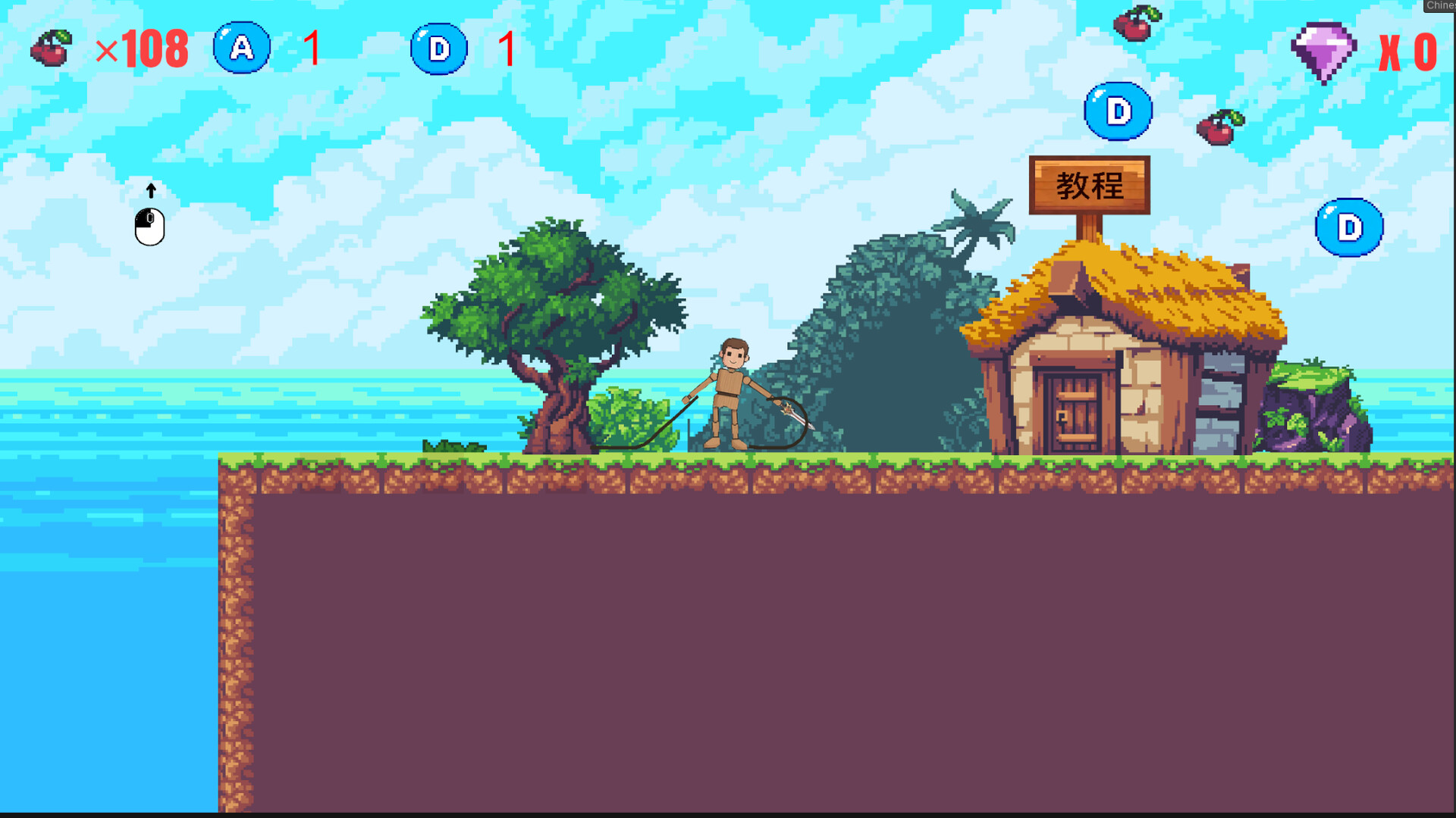 樱桃是获得是需要玩家(并非绳子)来取得的,玩家取得樱桃可以增加血量。
