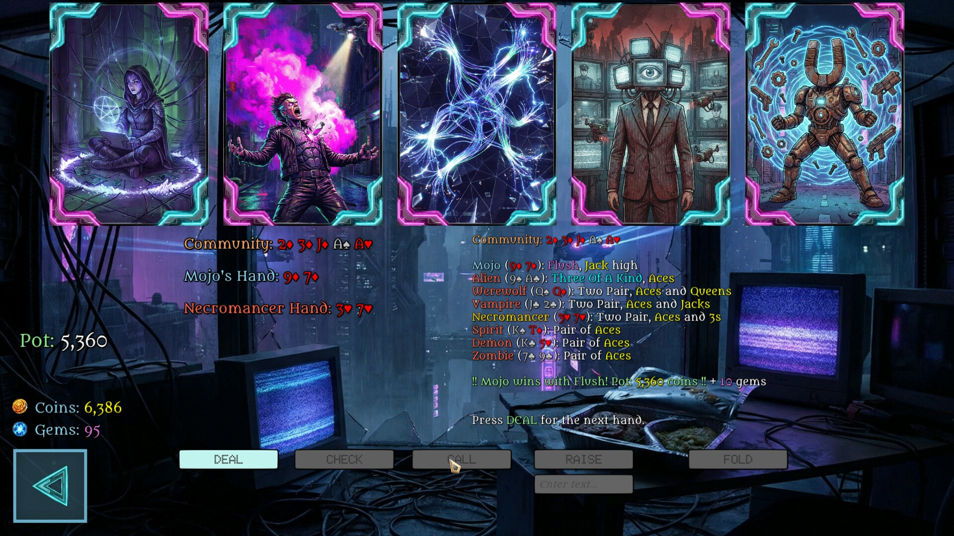 • The Glitch Arcade: Hustle for Credits & Energy in hacked versions of Poker, Pool, Blackjack, Snooker, Chess, and Retro Arcade shooters.