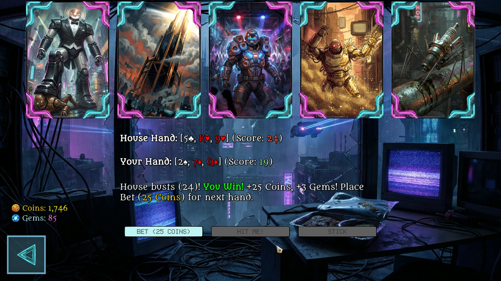 • The Glitch Arcade: Hustle for Credits & Energy in hacked versions of Poker, Pool, Blackjack, Snooker, Chess, and Retro Arcade shooters.