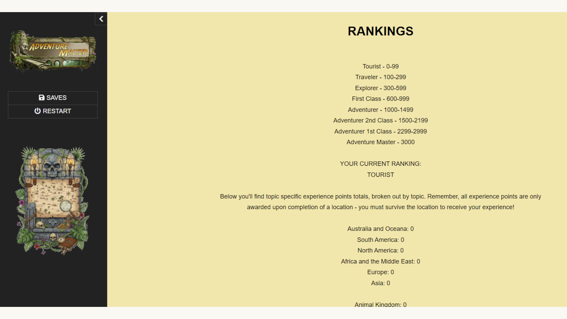 Additionally, sometimes when you answer a question correctly you’ll be given an opportunity to answer a BONUS question based on classic adventure stories in the movies and literature for additional experience points in various categories.