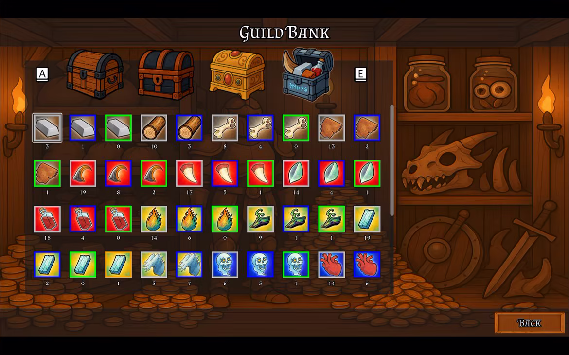 Use the barracks to manage recruits and squads, the academy to unlock new tactical options, the guild bank to organize recovered gear, and the crucible to craft or improve equipment.