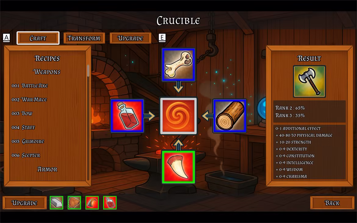 Recovered weapons, armor, accessories and materials feed your long-term progression.