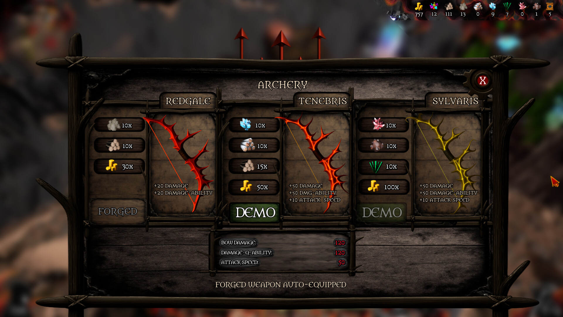 Between fights gather wood, stone, herbs, glacialite, infernite and other mystical resources. Craft, upgrade your gear and unlock things you cannot get any other way.