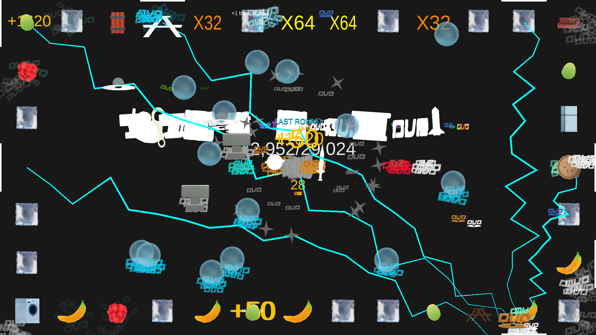 A satisfying roguelike where a DUD logo bounces around the edge of the screen, activating special tiles to score larger and larger points. Create powerful builds and synergies to maximise your score and break the game in crazy ways.