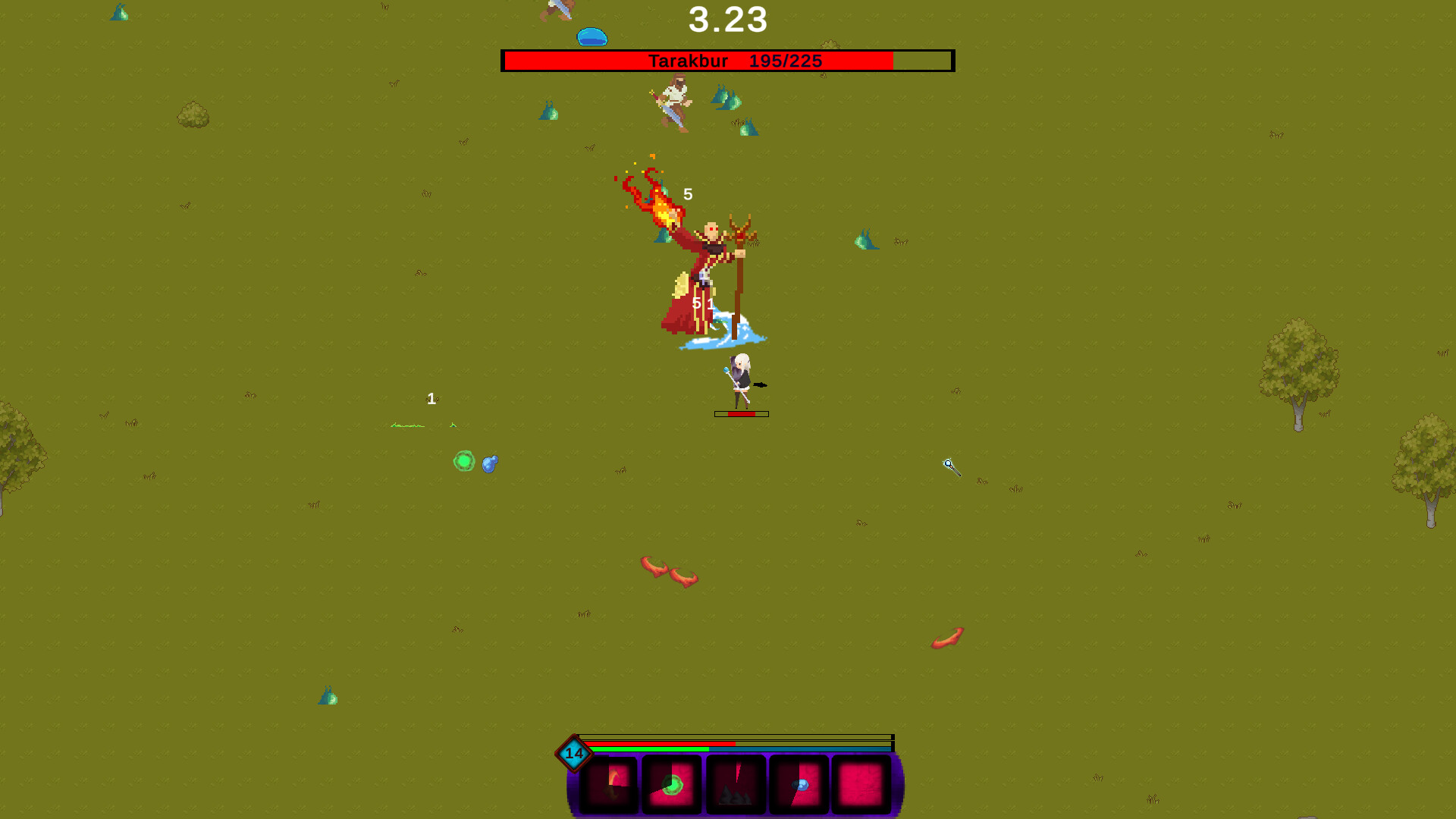 Magus Day is a top-down arena shooter where you play a mage who upgrades her spells every level to fight the incoming monsters.