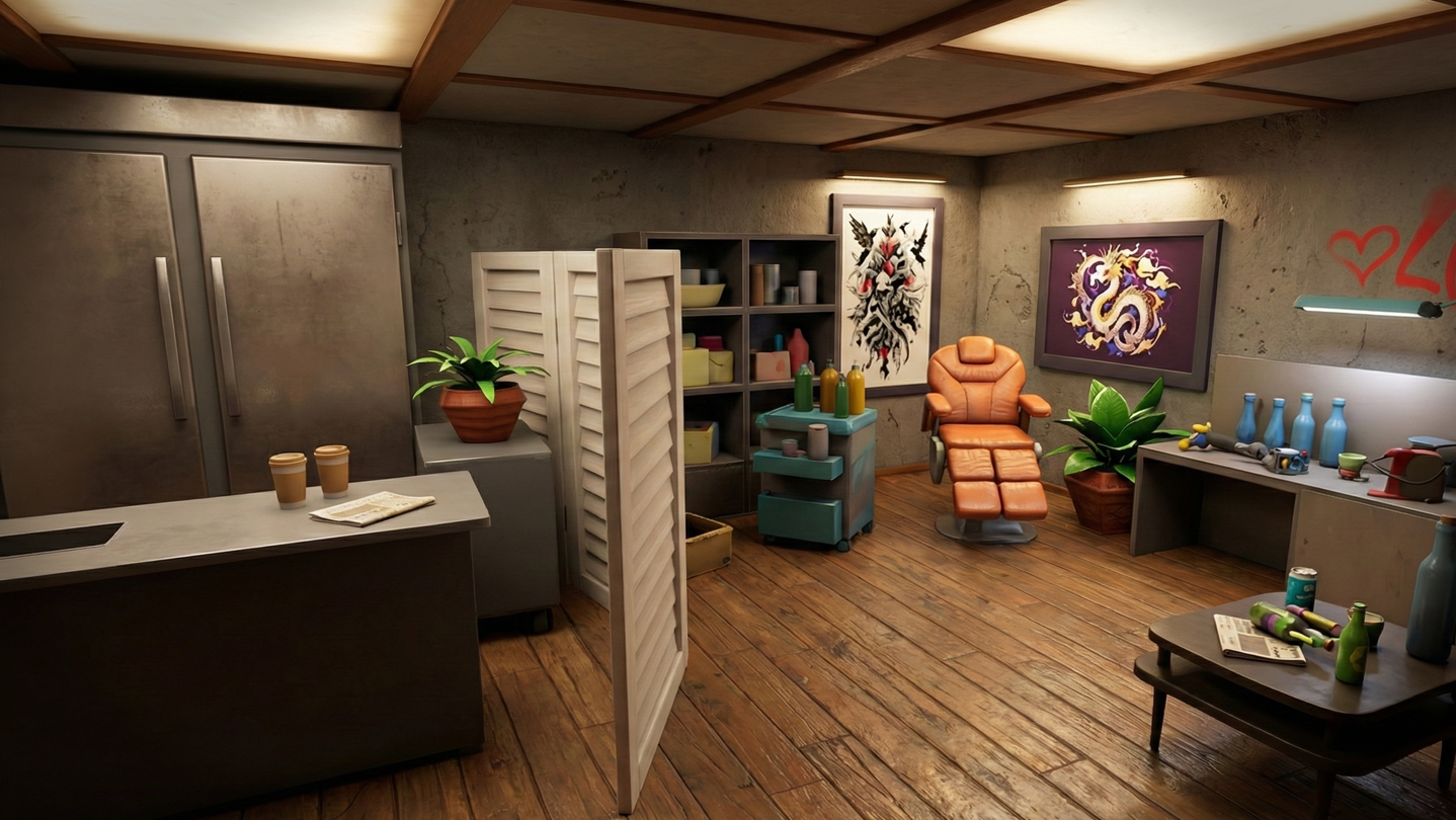 « La version actuelle offre une boucle de jeu entièrement jouable. Les joueurs peuvent louer et décorer plusieurs boutiques différentes, fournir des services et expérimenter différentes machines à tatouer. Ils peuvent gérer le personnel et l'inventaire via le système de tablette, explorer le monde ouvert, acheter des biens immobiliers et gérer leurs cycles de vie. Toutes les mécaniques de base listées dans la section « À propos de ce jeu » sont actuellement implémentées. Nous continuerons d'étendre le contenu et d'améliorer le jeu en fonction des retours que nous recevons. »