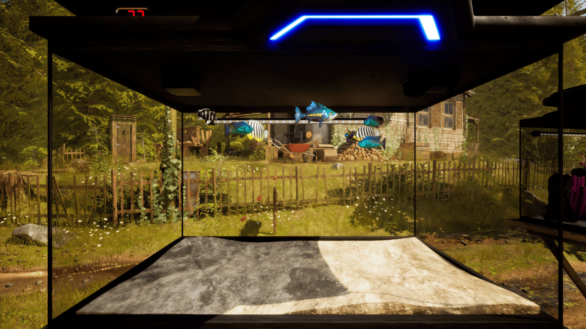 “The Early Access version offers a fully playable core experience. Players can manage multiple fish tanks, feed fish, clean tanks, grow and sell fish to earn money, optimize their income, unlock new tanks and fish, build the communication tower, and a experience a day/night cycle with ambient forest sounds.”