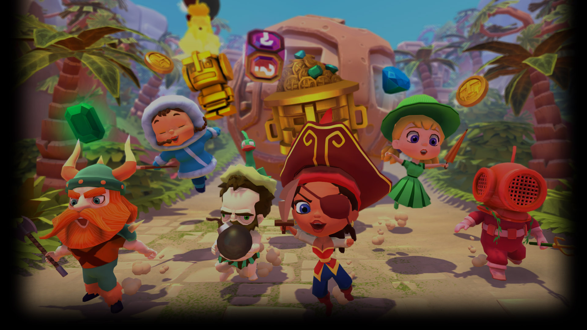 As well as Party Mode, you can challenge your friends in Arena Mode to see who's the king of the ring! Battle it out across 12 different locations, and expect to stumble upon fresh new chaos from time to time in the form of a hidden game mode or two! Expect the unexpected, and die... we mean WIN in extreme ways! What are you waiting for, there's treasure out there!