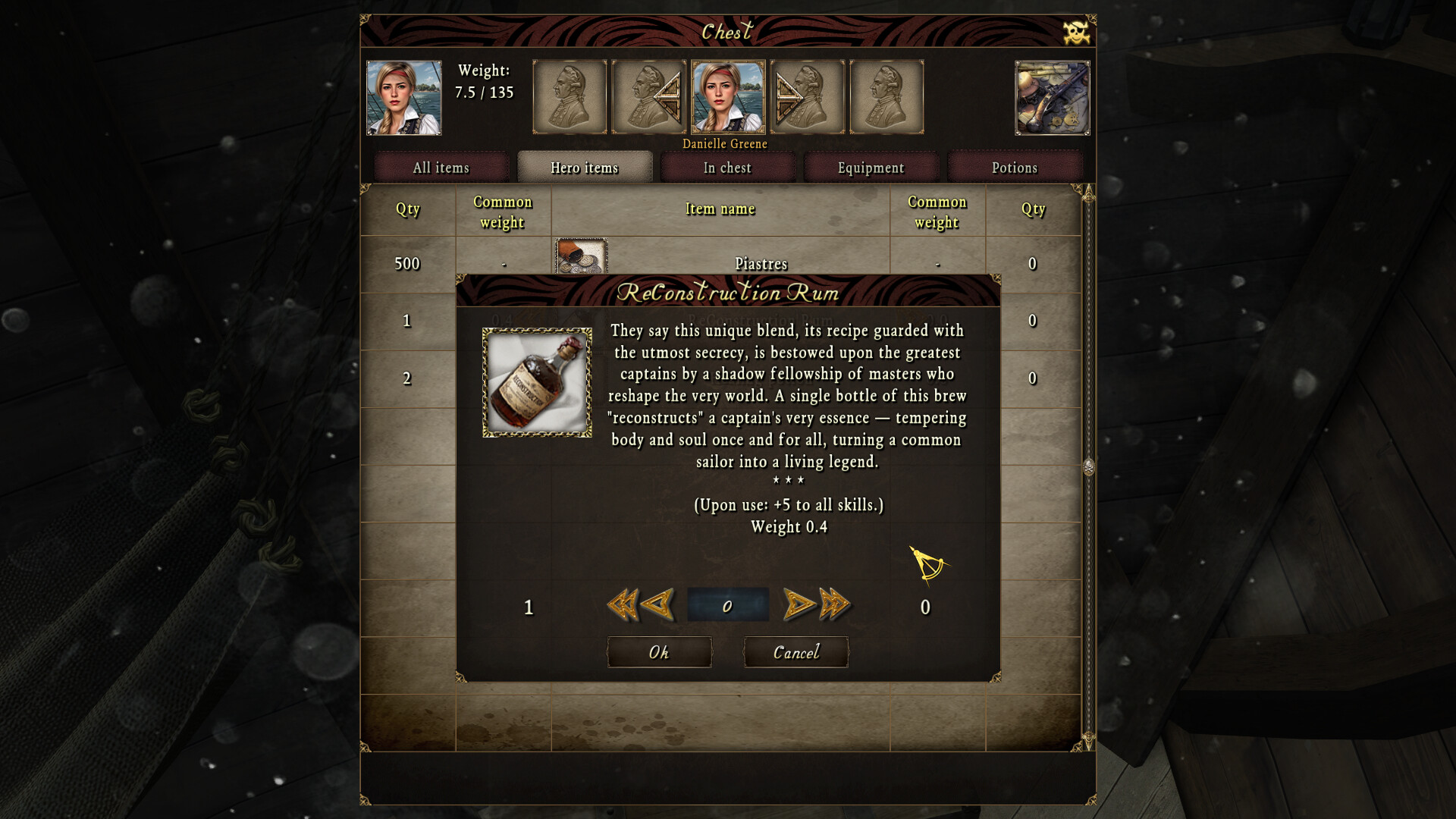 • The rum and sword can be found in your personal chest inside the captain's cabin.