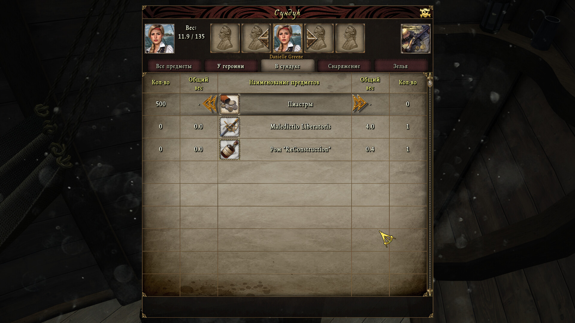 • Ром и меч будут лежать в вашем личном сундуке в каюте капитана.