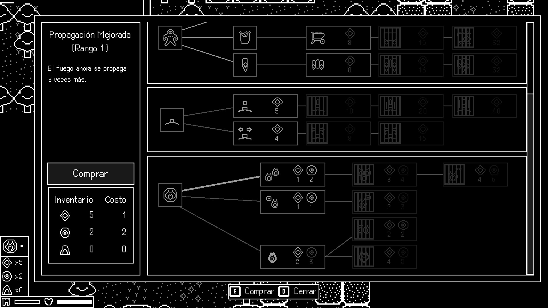 Dispones de un gran árbol de mejoras en el que puedes gastar tus recursos.