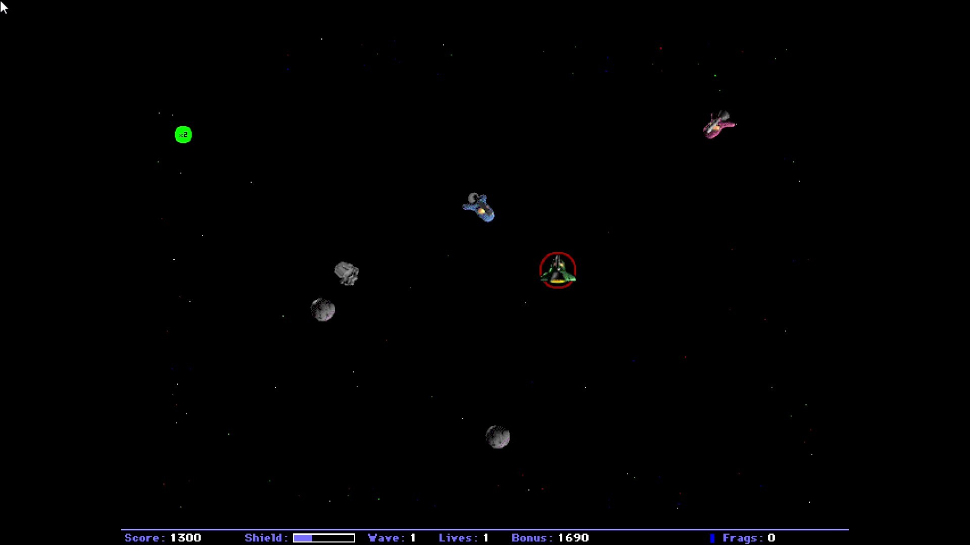 You pilot your ship through the dreaded "Maelstrom" asteroid belt -- suddenly your best friend thrusts towards you and fires, directly at your cockpit. You raise your shields just in time, and the battle is joined.