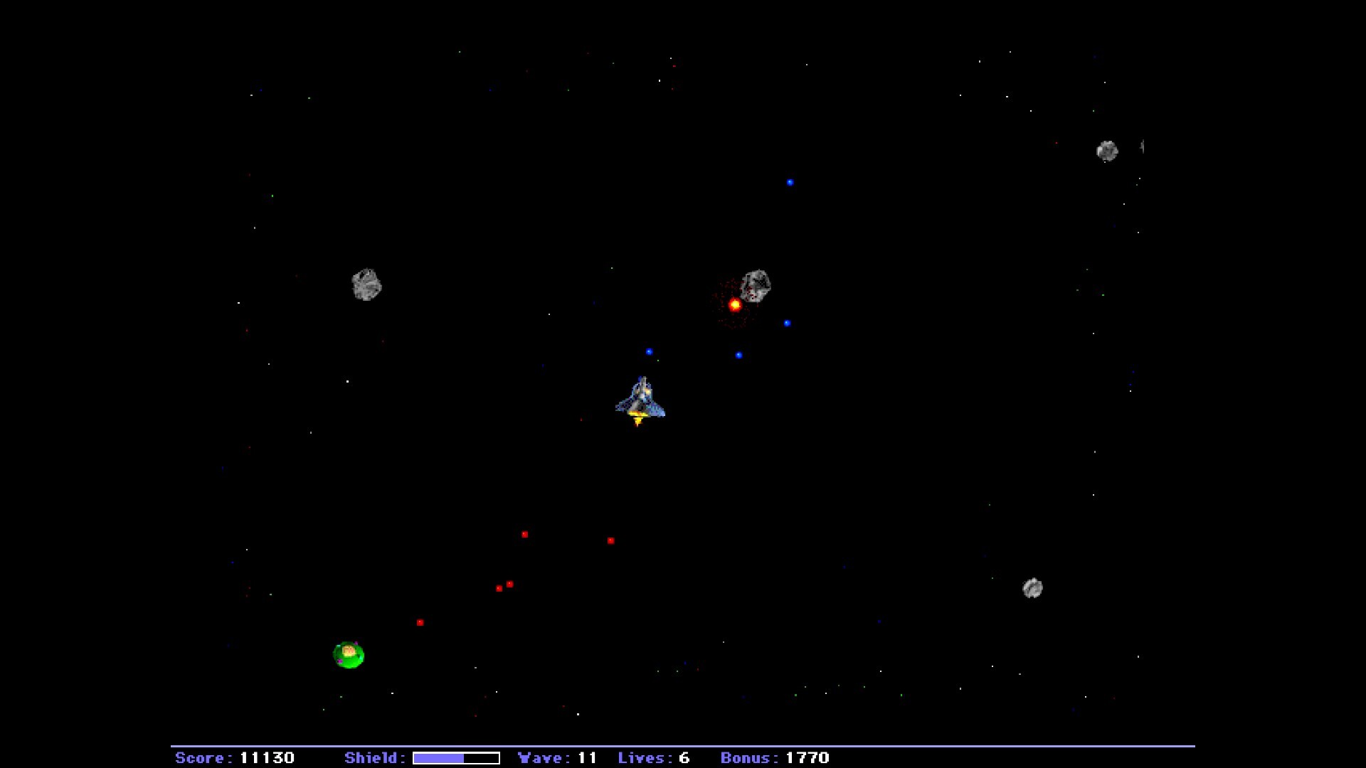 Maelstrom is an open source port of the original shareware game for the Macintosh by Ambrosia Software. It is a fast-action, asteroids-like game, with classic pixel graphics and original sounds.