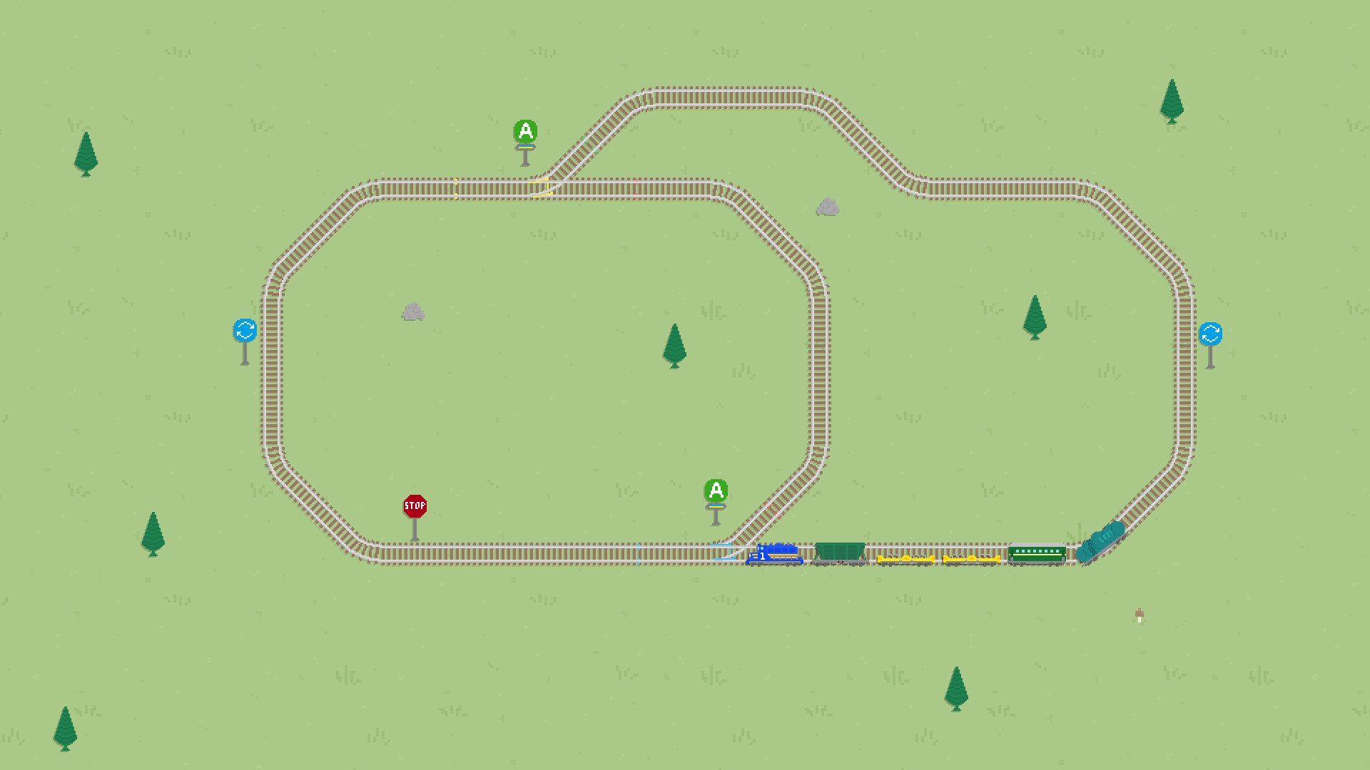 • dynamic train physics: weight-dependent movement, collisions, and derailments;
