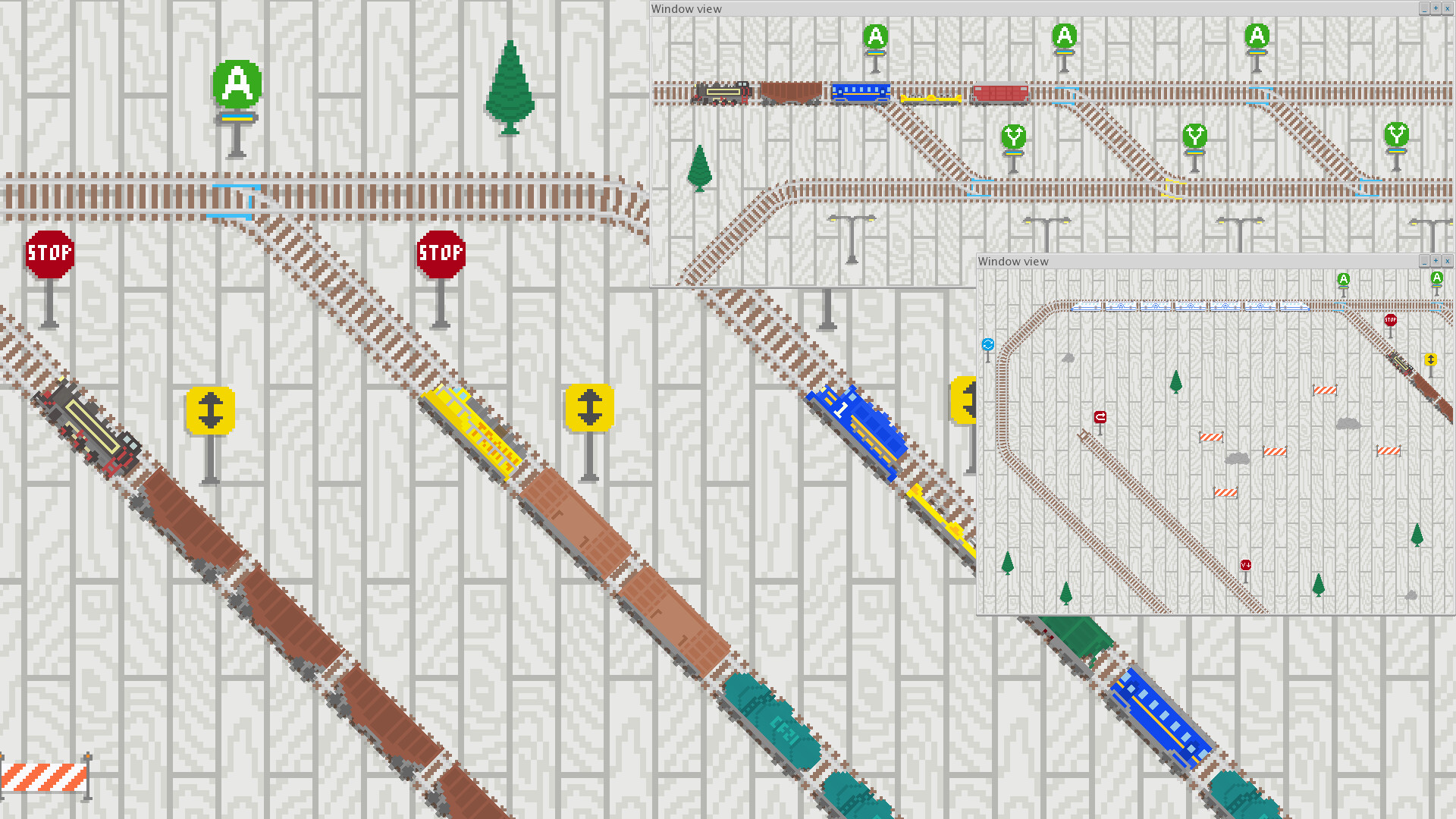 • dynamic train physics: weight-dependent movement, collisions, and derailments;