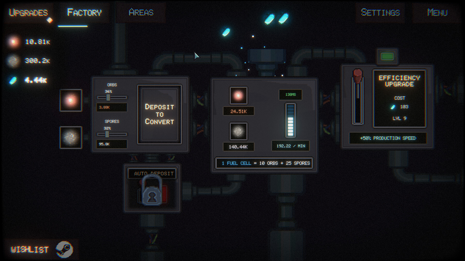 • The Fuel Factory & Offline Production: Deposit harvested Orbs and Spores to synthesise Fuel Cells. The factory features Offline Production, converting resources in the background even while the game is closed