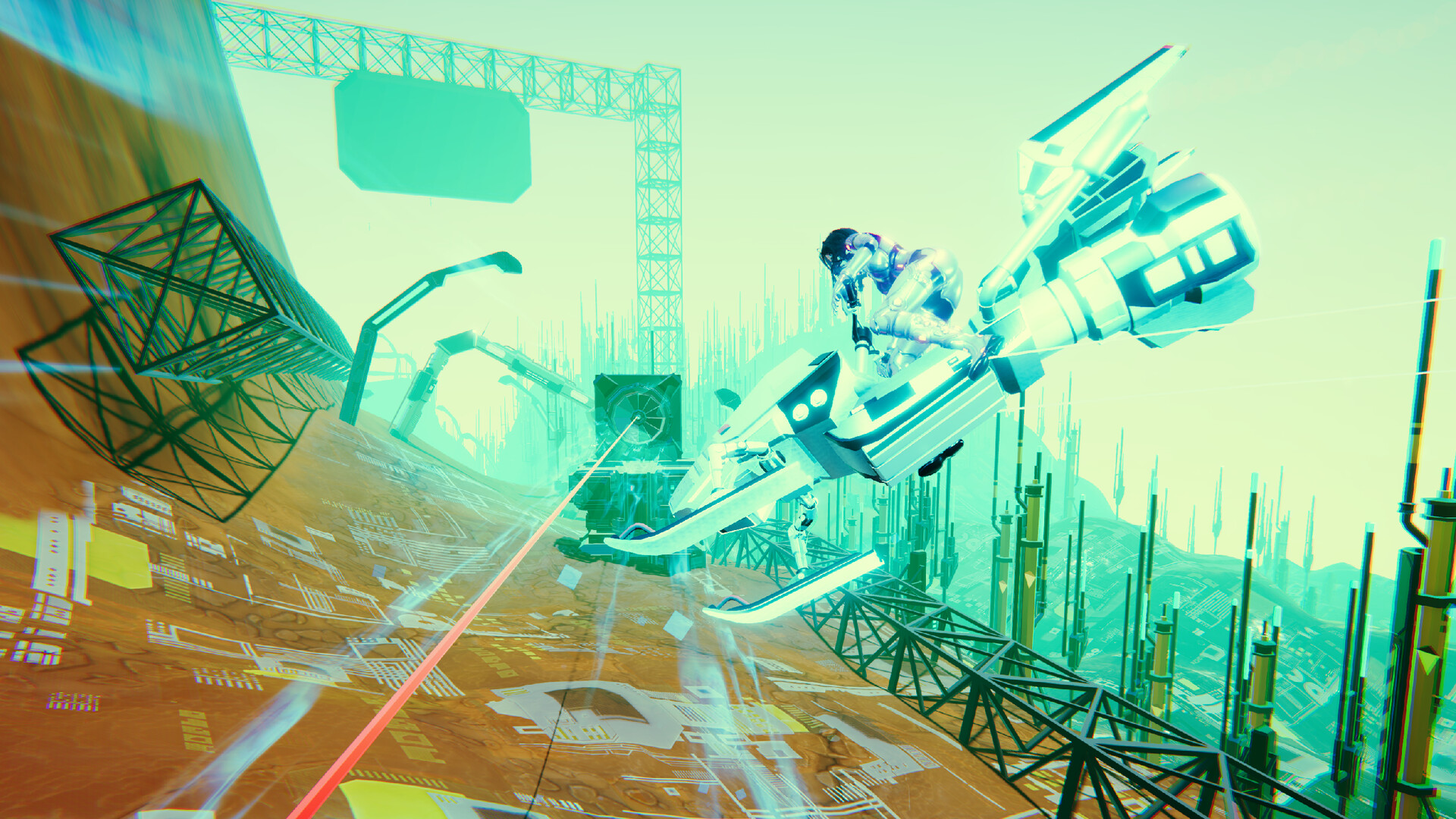 Vector Rider is a high-speed rocket sled traversal game where the world is broken, hostile, and trying to stop you.
