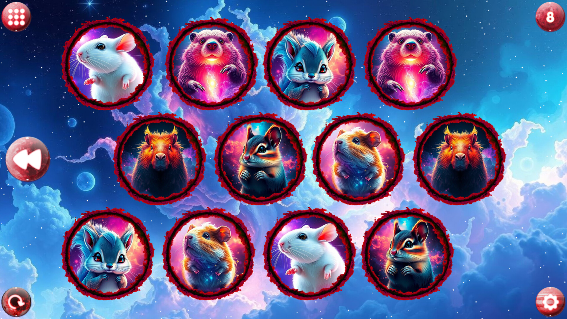 Cute, relaxing memory game where you match pairs of adorable rodents in space