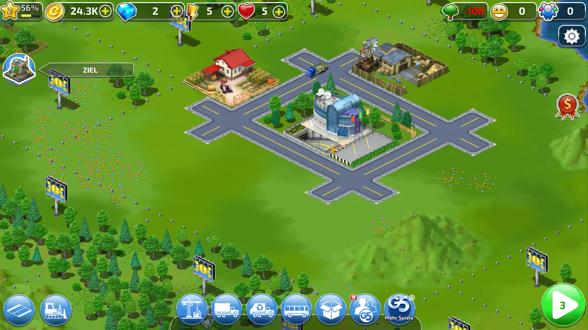 Verwandle deine Stadt in ein Ziel von Weltrang. Baue Wunder wie den Eiffelturm, die Statue of Liberty, das Kolosseum und die Oper von Sidney in deiner Stadt nach, um Touristen anzuziehen.