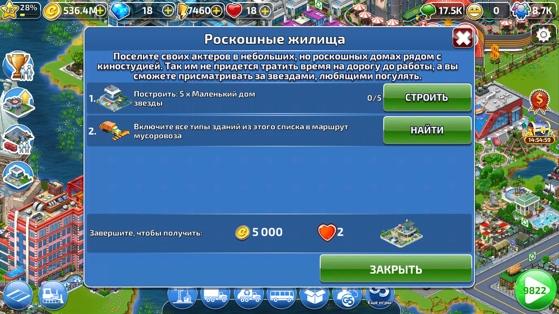 Готовы построить мегаполис своей мечты? Станьте мэром в уникальной игре, которая сочетает в себе захватывающие головоломки «три в ряд» и стратегическое градостроительство! Превратите небольшой участок земли в процветающий рай. Воплощайте любые проекты — будь то уютный городок с тенистыми парками или футуристический деловой центр со множеством небоскребов. Решайте головоломки, зарабатывайте ресурсы и создавайте идеальное место для жизни горожан!