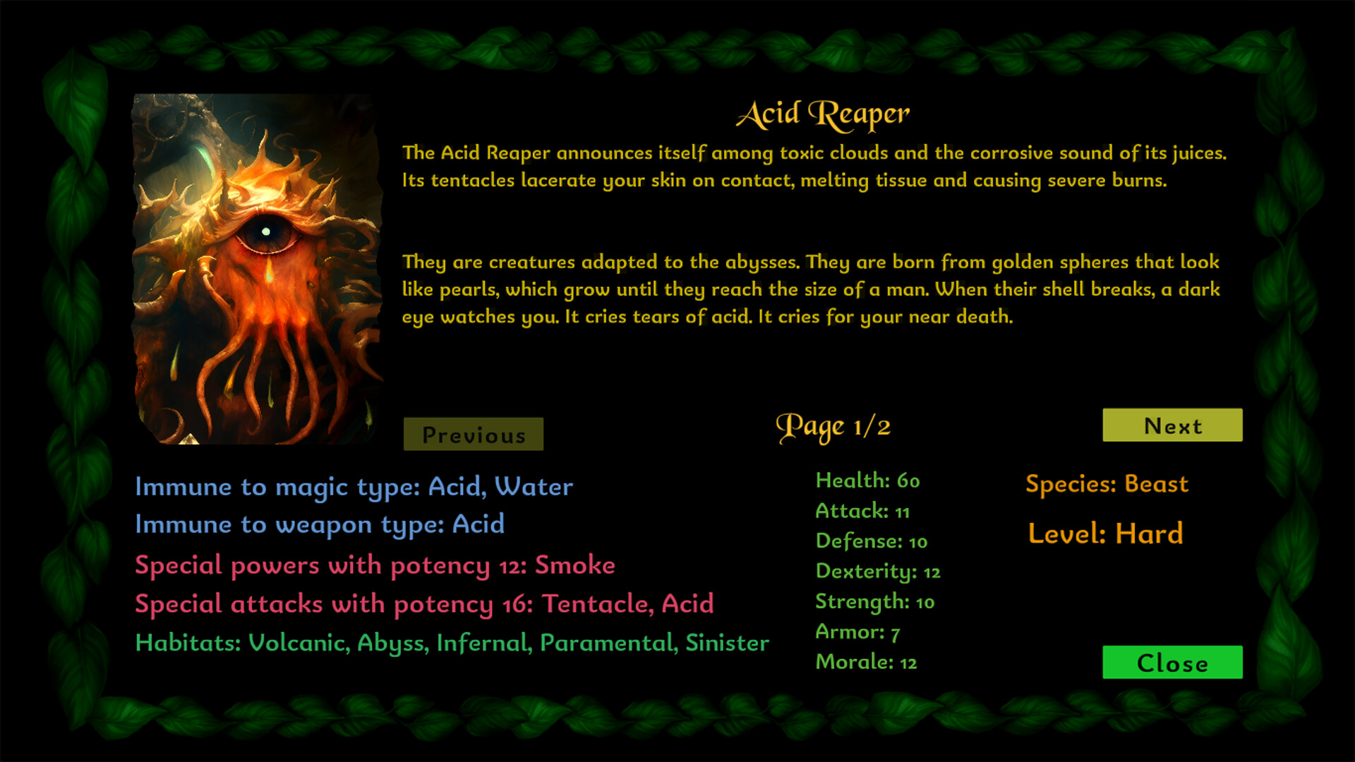 Do you want to learn more about the monsters of Caverns and Dryads? Know more about the game world of the Rift? Discover the powers, vulnerabilities, and special attacks of the monsters, and their strength or defense levels?