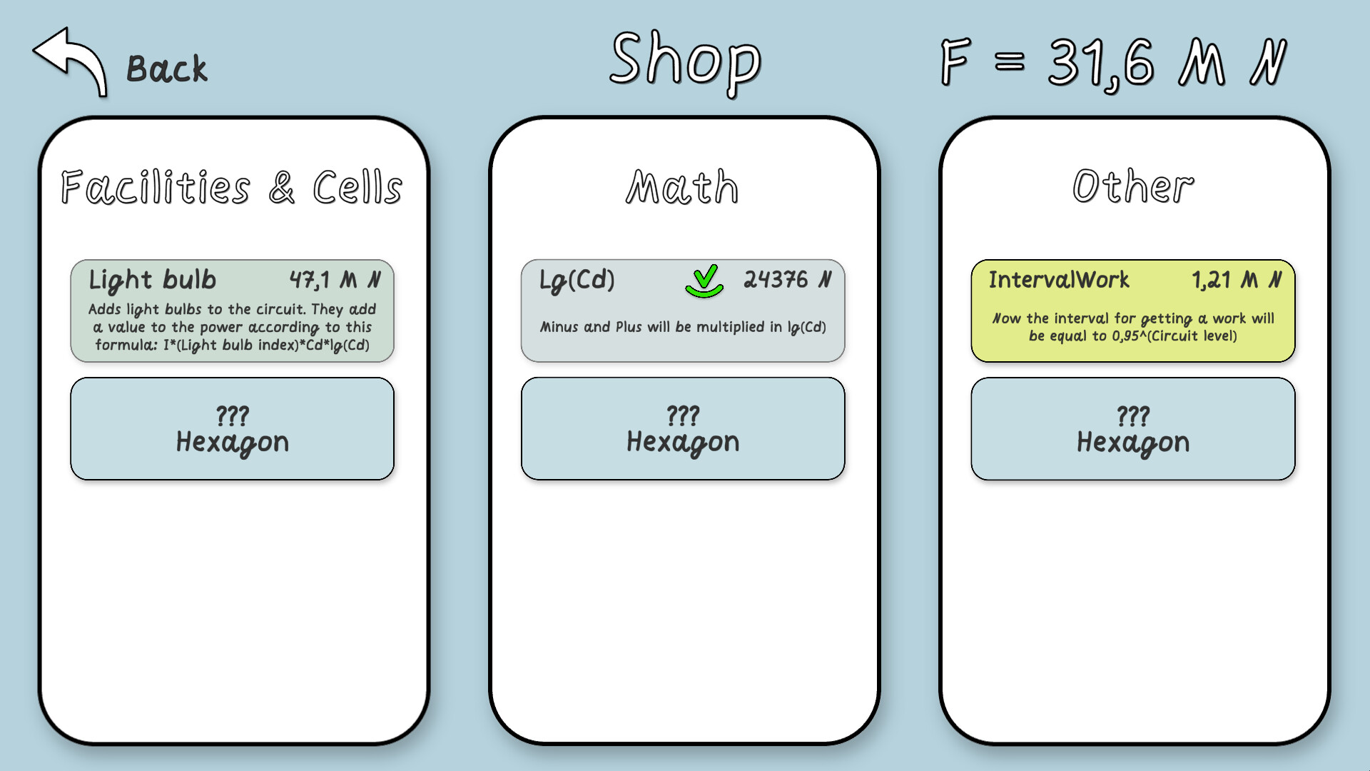 Idle puzzle in the style of electrical circuits. Change the positions of the wires to increase your income. You'll need to connect pluses with minuses, as well as various cells in the most efficient way to earn as much as possible. You'll encounter a standard square grid, a hexagonal grid, and an octagonal grid. Buy upgrades in the shop to develop your circuit.