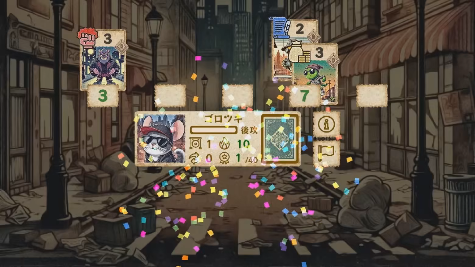 Gorotsuki Paradise is an online PvP card game where you build your deck as you battle.🃏 Recruit over 150 unique "gorotsuki" (Japanese for gangsters, thugs, and outlaws) to dominate a mad city called Saitama.🦹 It’s completely free to play, with no pay-to-win mechanics!🤑