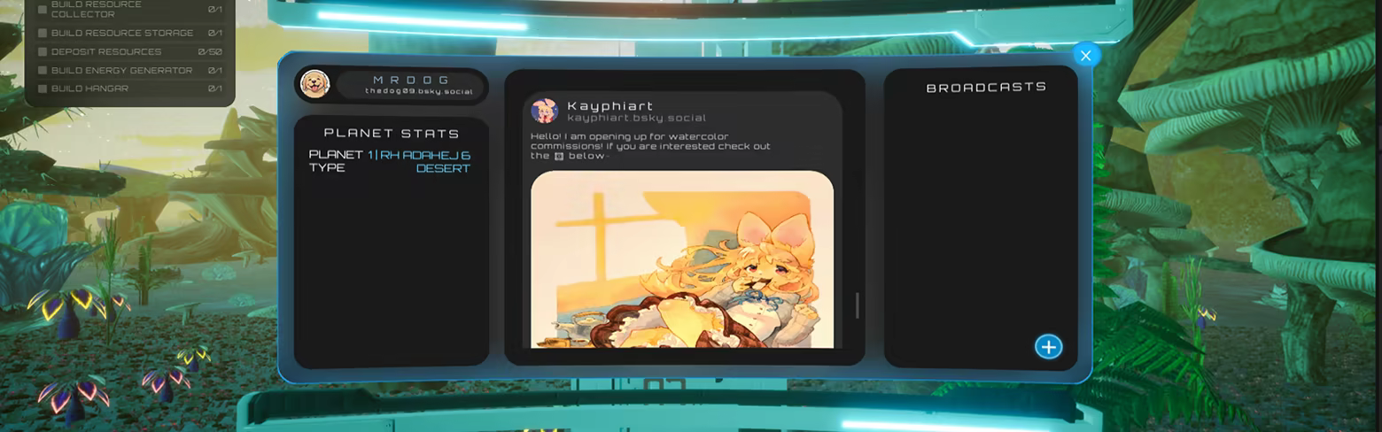 In Red Sky, planets aren’t just places—they’re extensions of your identity. Connect your Bluesky account, scout the stars, and claim a world that resonates with you.