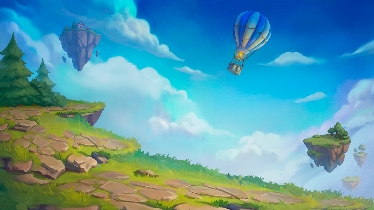 Explore stylized floating islands, fantasy dungeons, and vibrant locations wrapped in a light fairy-tale atmosphere.
