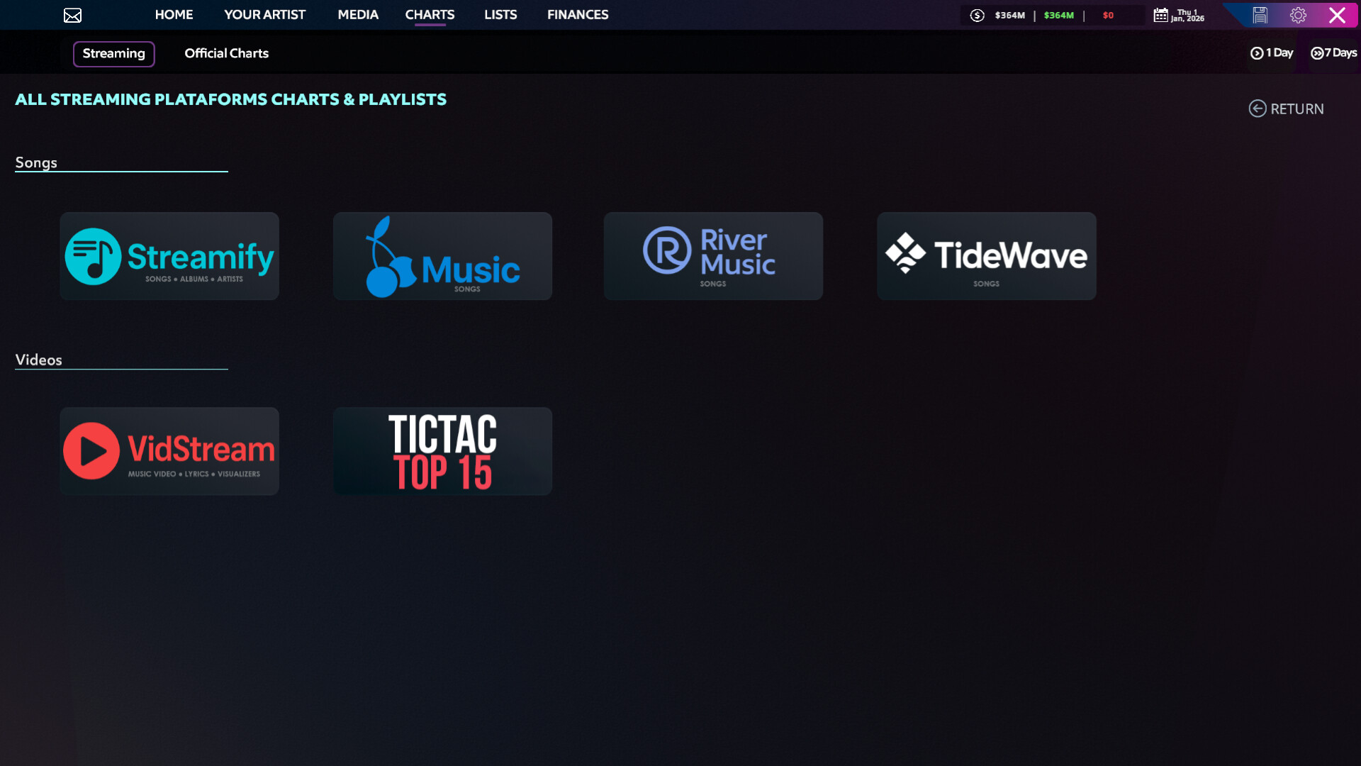 • Sales & Streams – Realistic record sales and streams influenced by seasonal trends, quality and popularity.