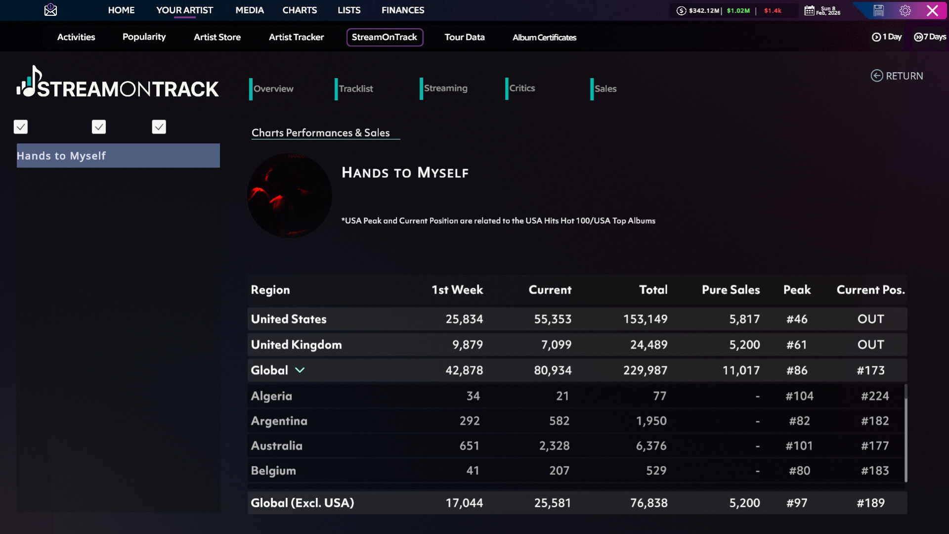 • Sales & Streams – Realistic record sales and streams influenced by seasonal trends, quality and popularity.
