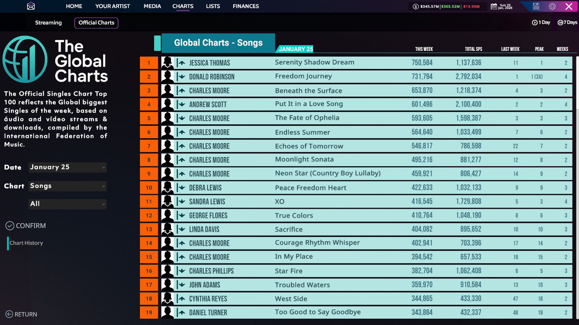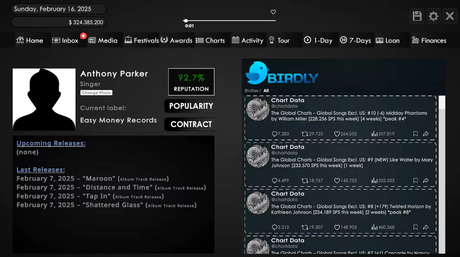 • Sales & Streams – Realistic record sales and streams influenced by seasonal trends, quality and popularity.