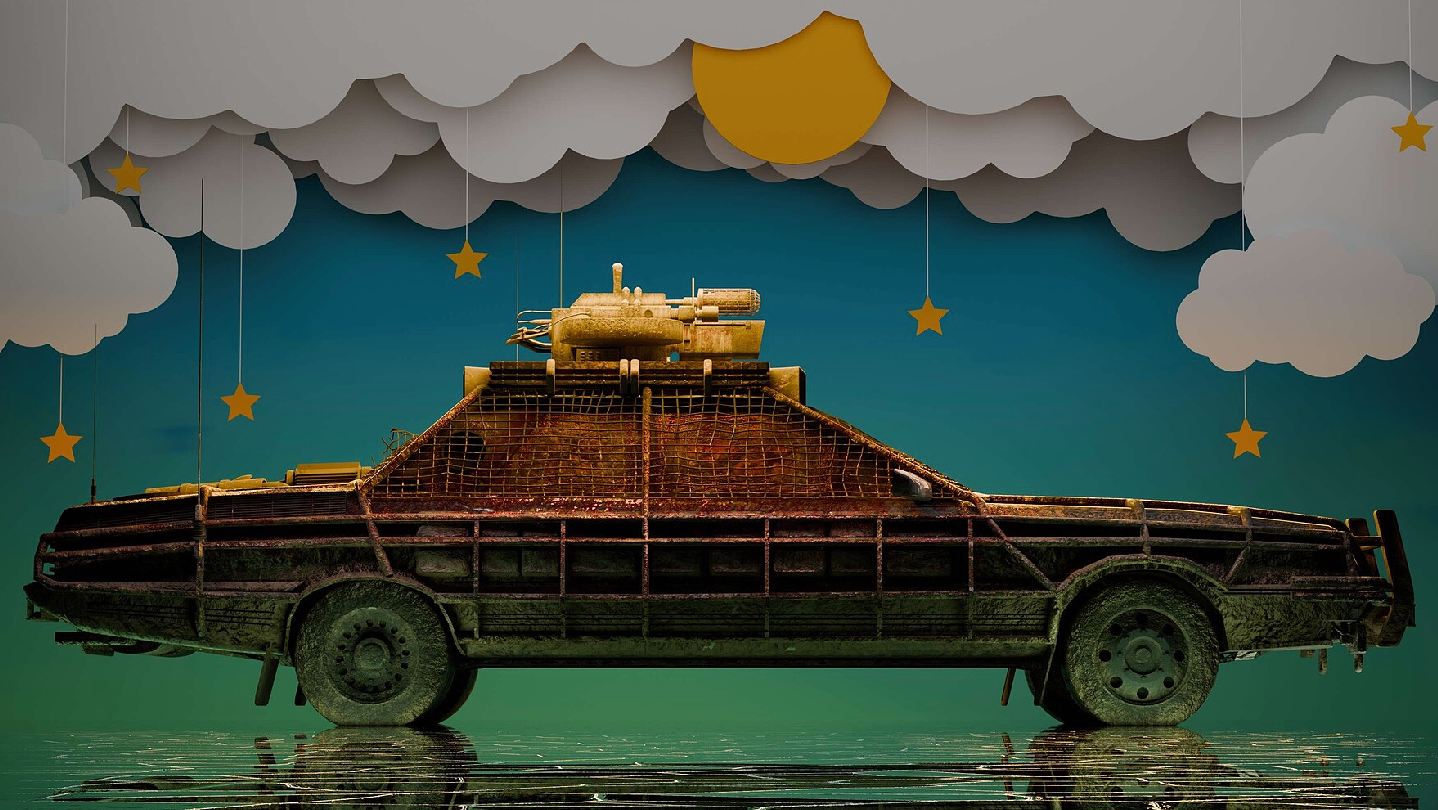 Cars are no exception, and the military regime is running out of food, the entity is forced to cannibalize itself and sends some unfortunate cruisers on a daily hellride to destroy other cars and let their flesh be vultured by the organic soil, repeating the cycle.