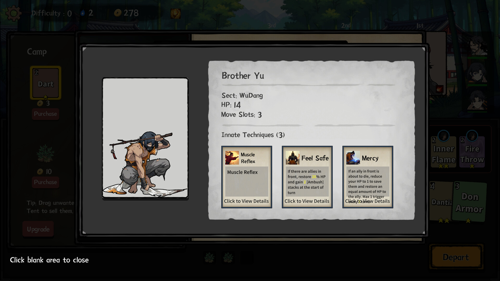 <GoSifu> is a roguelite deckbuilding game with turn-based combat. Lead a team of masters, each with unique abilities, to build your base, play cards with strategy, construct your party, and defeat powerful foes one after another.