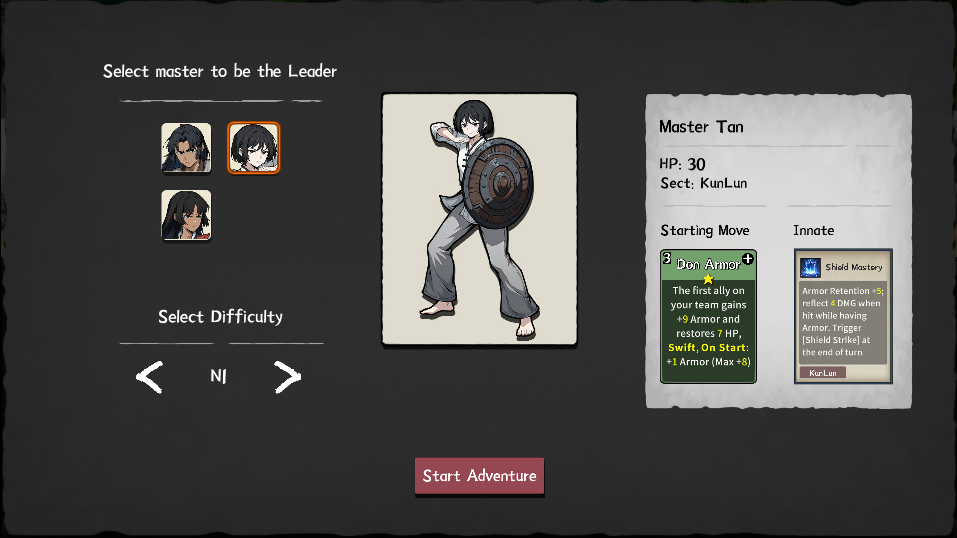 <GoSifu> is a roguelite deckbuilding game with turn-based combat. Lead a team of masters, each with unique abilities, to build your base, play cards with strategy, construct your party, and defeat powerful foes one after another.