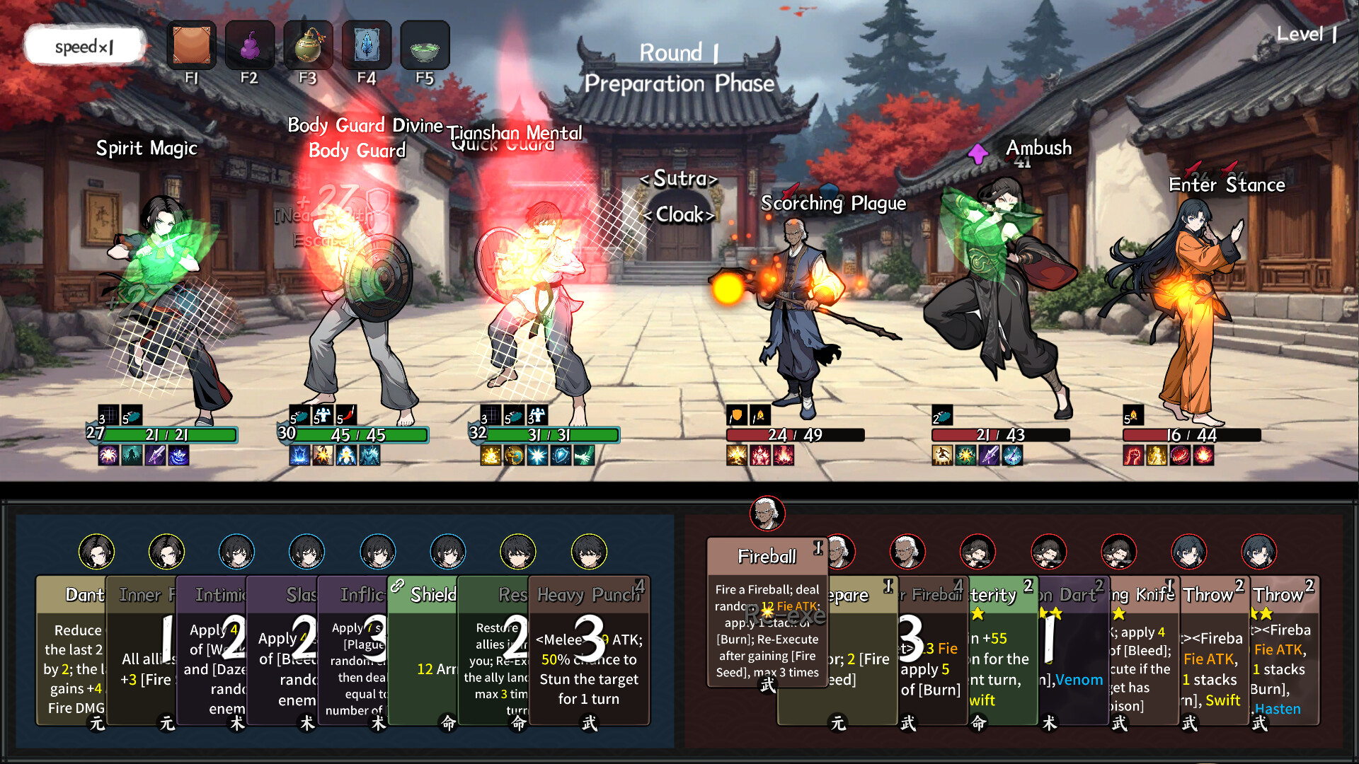 <GoSifu> is a roguelite deckbuilding game with turn-based combat. Lead a team of masters, each with unique abilities, to build your base, play cards with strategy, construct your party, and defeat powerful foes one after another.